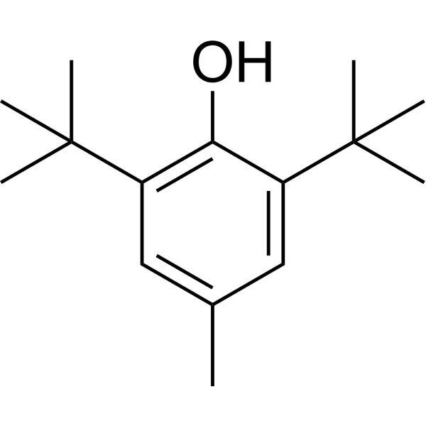 ブチル化ヒドロキシトルエン (BHT; 2,6-ジ-tert-ブチル-p-クレゾール; 酸化防止剤 264) (CAS: 128-37-0) は、主に食品業界で酸化防止剤および防腐剤として使用される合成フェノール化合物です。 ブチル化ヒドロキシトルエンは、油脂含有食品中の脂質の酸化を防ぐために使用される。ブチル化ヒドロキシトルエンの毒性は一般に低いと考えられています。ブチル化ヒドロキシトルエンは多くの近消費者製品に使用されているため、国民全体での暴露が予想されます。