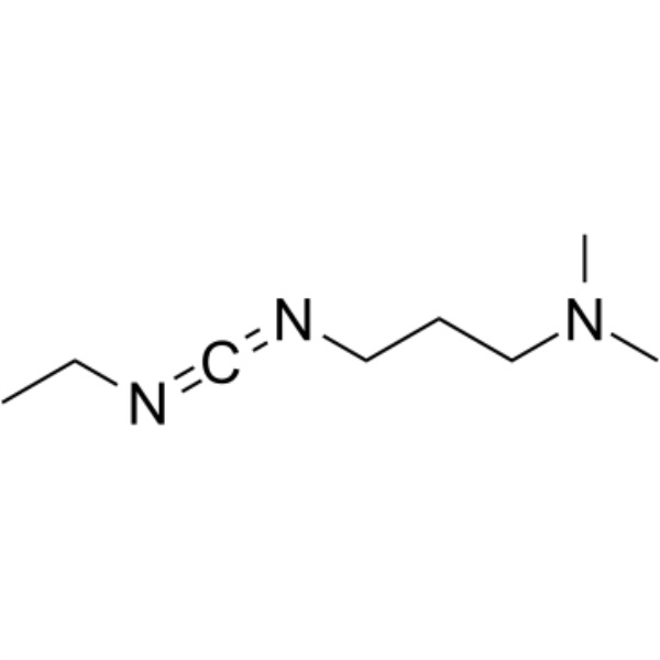 1-(3-ジメチルアミノプロピル)-3-エチルカルボジイミド (EDC) (CAS: 1892-57-5) は、生体共役化学において広く使用されているカルボジイミド カップリング剤です。 EDC は分子内のカルボキシル基を活性化し、カルボキシル基とアミン基の間のアミド結合の形成を促進します。