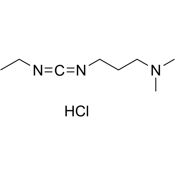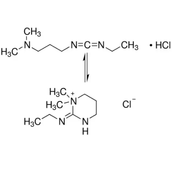 1-(3-ジメチルアミノプロピル)-3-エチルカルボジイミド塩酸塩 (EDC・HCl) (CAS: 25952-53-8) は白色の結晶性粉末で、潮解しやすく、水に溶け、エタノールに溶け、アミド合成におけるカルボキシル基の活性化試薬として使用され、リン酸基の活性化、タンパク質の架橋にも使用されます。核酸、および免疫共役剤の生産。 EDC-HCl は 4.0 ~ 6.0 の pH 範囲で使用され、カップリング効率を向上させるために N-ヒドロキシスクシンイミド (NHS) または N-ヒドロキシスルホスクシンイミド ナトリウム塩と組み合わせて使用されることがよくあります。