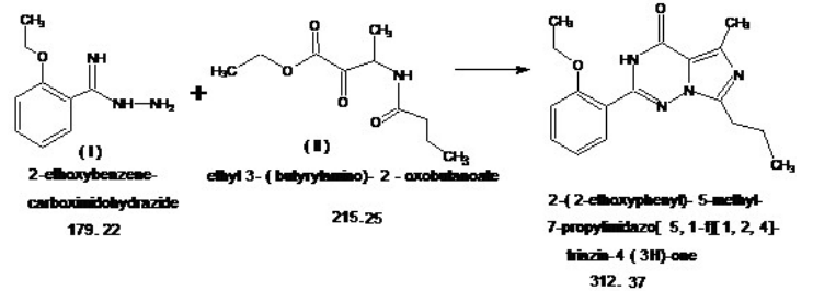 2-(2-エトキシフェニル)-5-メチル-7-プロピルイミダゾ[5,1-F][1,2,4]トリアジン-4(3H)-オン (CAS: 224789-21-3) は、バルデナフィル (CAS: 224785-90-4) / バルデナフィル塩酸塩 (CAS: 224785-91-5)。バルデナフィルは、男性の勃起不全の経口治療のために発売された新しい PDE5 阻害剤であり、この適応症のために 1998 年に導入された最初の PDE5 阻害剤であるシルデナフィル (バイアグラ) と顕著な構造的類似性を持っています。