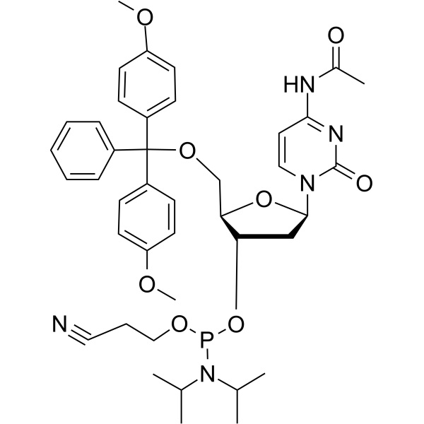 | 同義語 | DMT-dC(ac) アミダイト; Ac-dC ホスホロアミダイト; dC (Ac) CE-ホスホロアミダイト; Ac-dC-CE ホスホロアミダイト; 5'-O-DMT-N4-アセチル-2'-デオキシシチジン 3'-CE ホスホロアミダイト; 5'-O-DMT-N4-アセチル-2'-デオキシシチジンホスホルアミダイト; N4-アセチル-5'-O-(4,4'-ジメトキシトリチル)-2'-デオキシシチジン-3'-O-[O-(2-シアノエチル)-N,N'-ジイソプロピルホスホロアミダイト]; N4-アセチル-2'-デオキシ-5'-O-DMT-シチジン 3'-CE ホスホロアミダイト |