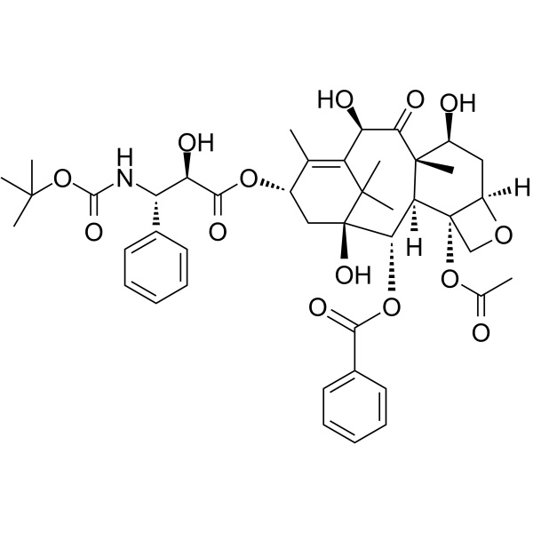 Taxotere または Docecad として販売されているドセタキセル (Taxotere) (CAS: 114977-28-5) は、細胞分裂を妨げることによって作用する、確立された抗有糸分裂化学療法薬です。ドセタキセルは、局所進行性または転移性の乳癌、頭頸部癌、胃癌、ホルモン不応性前立腺癌および非小細胞肺癌の治療のためにFDAによって承認されている。ドセタキセルは、特定のがんの種類や段階に応じて、単剤として、または必要に応じて他の化学療法薬と組み合わせて使用できます。ドセタキセルは、化学療法薬のパクリタキセルも含まれるタキサン薬物クラスのメンバーです。ドセタキセルはパクリタキセルの 2 倍の効力を維持しますが (紡錘体の中心体に対するドセタキセルの効果のため)、2 つのタキサンは同等の有効性を有することが観察されています。最近のいくつかの論文では、「ドセタキセルを含むレジメンがパクリタキセルを含むレジメンよりも大きな利益をもたらすという証拠はない」ことが判明した。 2 つの薬剤の有効性は同等であることが観察されていますが、パクリタキセルの方が副作用が少ない可能性があります。さらに、ドセタキセルは、さまざまな異なるメカニズムを介して細胞薬剤耐性を生じやすいことが注目されています。