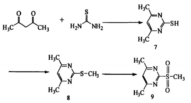 4,6-ジメチル-2-(メチルスルホニル)ピリミジン (CAS: 35144-22-0) 合成経路