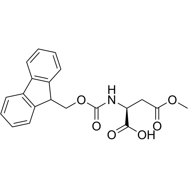 Fmoc-L-アスパラギン酸 β-メチル エステル (Fmoc-Asp(OMe)-OH) (CAS: 145038-53-5) はアスパラギン酸誘導体です。 Fmoc-アミノ酸は、ペプチド合成に使用され、有機合成中間体、医薬中間体、生化学試薬または化学試薬として使用されます。 Fmoc-Asp(OMe)-OH は、選択的カスパーゼ -3 ペプチド阻害剤としてペプチドの固相合成に使用される有用な研究用中間体です。