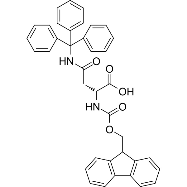 Fmoc-D-Asn(Trt)-OH (CAS: 180570-71-2) はアスパラギンの誘導体です。それは、固相ペプチド合成(SPPS)においてアスパラギンのD異性体をペプチド鎖に導入するために使用される保護アミノ酸のファミリーに属し、その安定性とタンパク質分解に対する耐性を高めます。