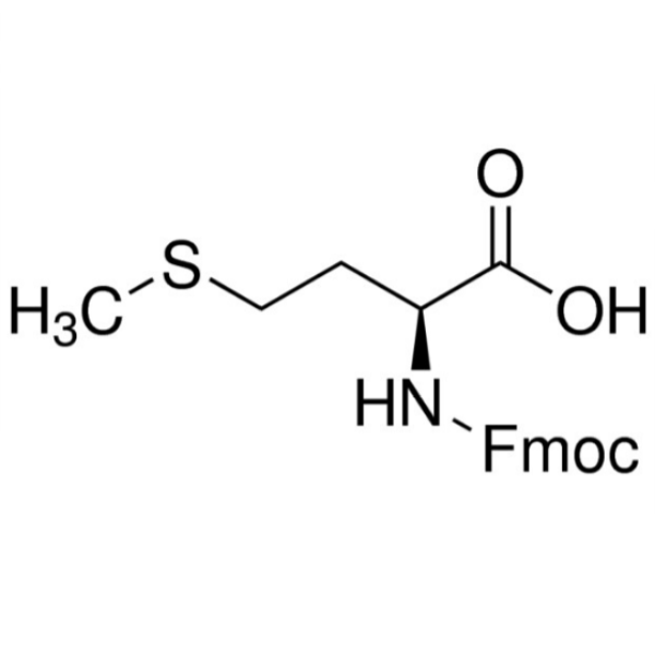 Fmoc-L-メチオニン (Fmoc-Met-OH) (CAS: 71989-28-1) は、L-メチオニンの N-Fmoc- 保護型です。ペプチド合成時の保護基として広く使用されています。 Fmoc基はアミノ酸配列のN末端に一時的に付加され、合成プロセス中にそれを保護する。合成後、適切な試薬を使用して Fmoc 基を除去すると、目的のペプチド生成物が残ります。