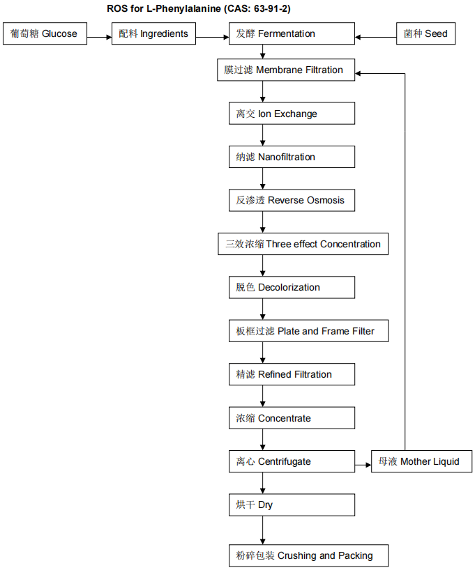 L-フェニルアラニン (H-Phe-OH) (CAS: 63-91-2) は必須アミノ酸であり、タンパク質に含まれるフェニルアラニンの唯一の形態です。それは18の一般的なアミノ酸の1つであり、人体の8つの必須アミノ酸の1つです。 L-フェニルアラニンは、アスパルテームの製造など、医療、飼料、栄養用途のために生産されています。 栄養補助食品として、L-フェニルアラニンは、アラニンのメチル基が置換されたベンジル基、またはアラニンの末端水素が置換されたフェニル基とみなすことができます。体内のほとんどは、フェニルアラニンヒドロキシラーゼの触媒作用によってチロシンに酸化され、チロシンとともに重要な神経伝達物質やホルモンが合成され、糖と脂肪の代謝に関与します。 L-フェニルアラニンは生理活性芳香族アミノ酸です。人間や動物では自己合成できない必須アミノ酸である。人は毎日2.2gのL-フェニルアラニンを摂取する必要があります。 L-フェニルアラニンは、医薬品および食品添加物業界で広く使用されています。アミノ酸注射の重要な成分です。食品加工産業では、L-フェニルアラニンをベーカリー食品に添加することができます。そして、糖質によるアミド化により、フェニルアラニンの栄養を増強することができる。 L-フェニルアラニンは食品の香りを高め、必要なアミノ酸のバランスを保ちます。製薬業界では、L-フェニルアラニンは、ホルミルメルファラナムなどのアミノ系抗がん剤の中間体として使用されています。L-フェニルアラニンは、人体の必須アミノ酸の一つである甘味料アスパルテームの主原料です。主に製薬業界でアミノ酸輸液やアミノ酸医薬品に使用されています。食品業界では、主に食品甘味料アスパルテームの合成原料として使用されています。栄養補助食品や風味増強剤としても使用でき、ベーカリーなどの食品および飲料製品の製造にも使用されます。