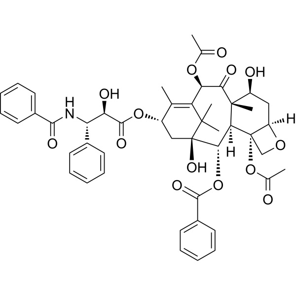 パクリタキセル (タキソール) (CAS: 33069-62-4) は、太平洋イチイの樹皮から単離された非常に複雑な有機化合物です。チューブリン二量体およびマイクロチューブリンフィラメントに結合し、フィラメントの集合を促進し、それらの解重合を防ぎます。このマイクロフィラメントの安定性の増加は、有糸分裂と細胞毒性の破壊をもたらし、神経線維における軸索輸送などの他の正常な微小管機能を破壊します。パクリタキセルについて確認されている耐性の主なメカニズムは、腫瘍細胞からの輸送であり、これにより細胞内薬剤の蓄積が減少します。この形態の耐性は、多剤輸送体 P- 糖タンパク質によって媒介されます。